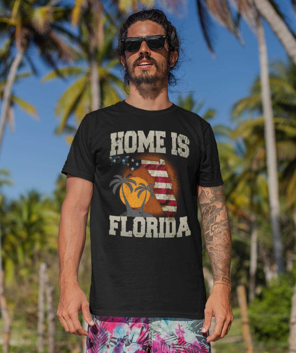 Home Is Florida T-Shirt – Sunshine State Pride Tee with American Flag and Palm Trees, Florida Native or Souvenir Gift Shirt Black T-Shirt Home Is Florida T-Shirt – Sunshine State Pride Tee with American Flag and Palm Trees, Florida Native or Souvenir Gift Shirt Black T-Shirt